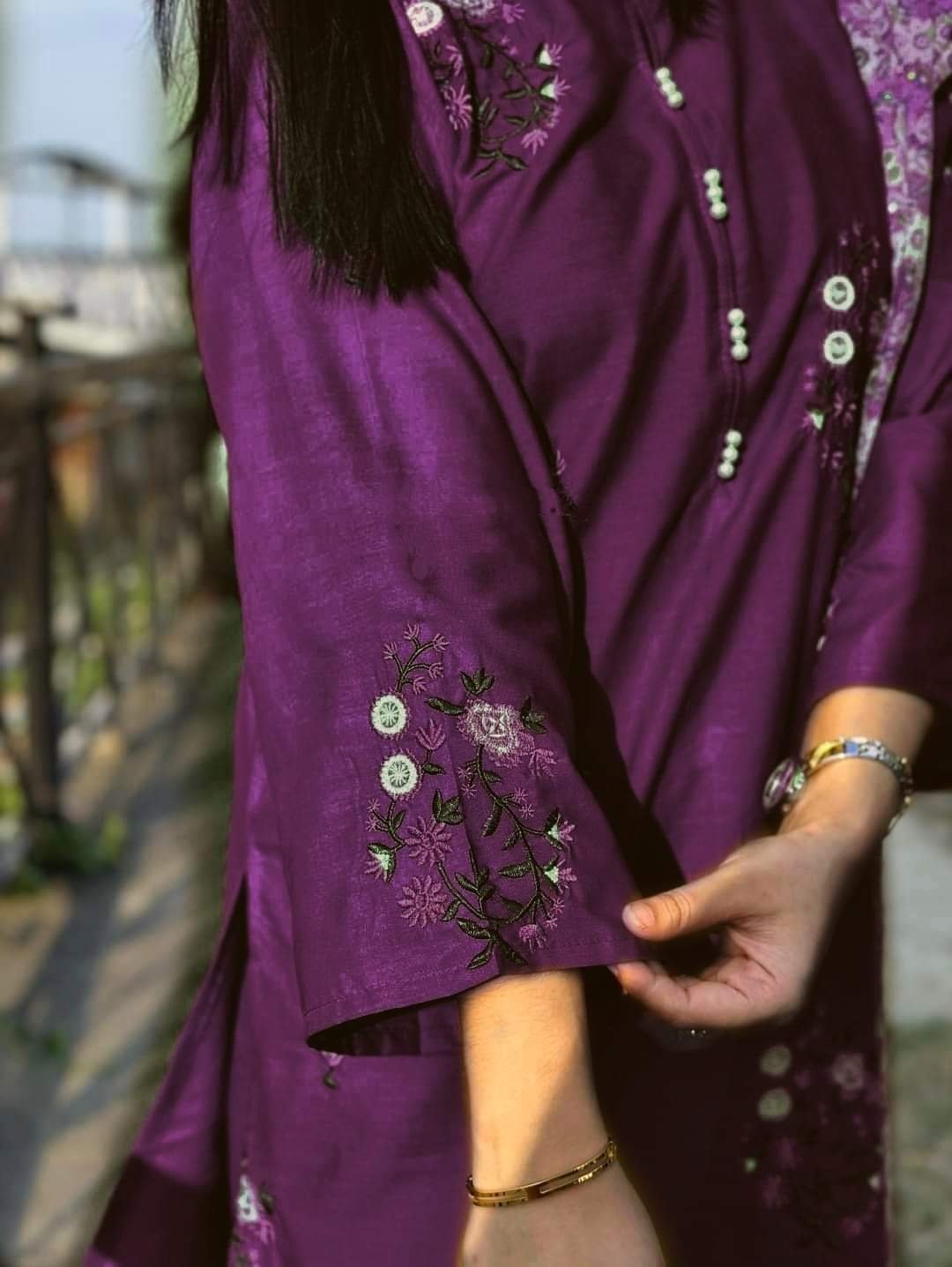 Introducing our New Pakistani Design Three-Piece Collection, designed for elegance and comfort. This collection includes a beautifully embroidered top, matching pants, and a printed dupatta that will make you stand out at any event.