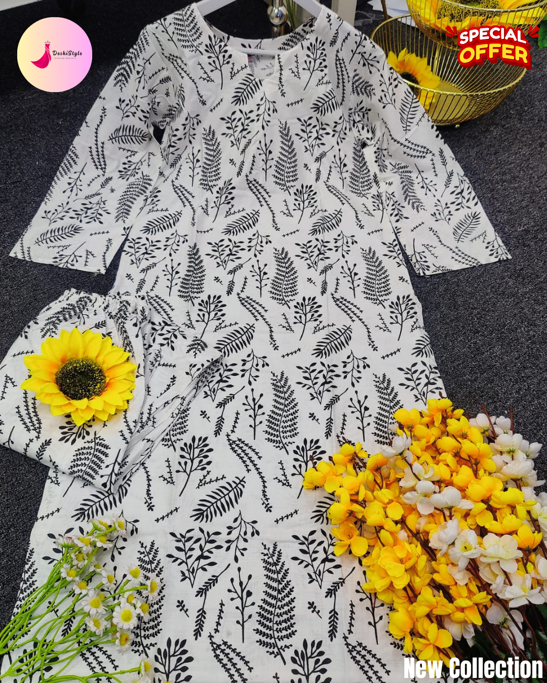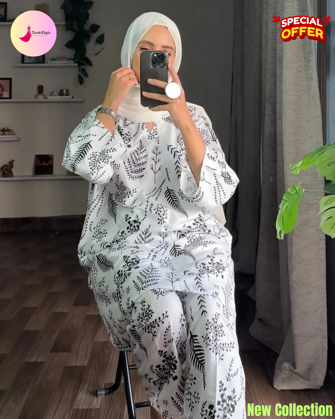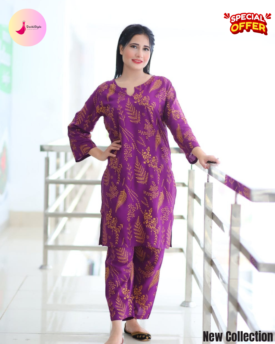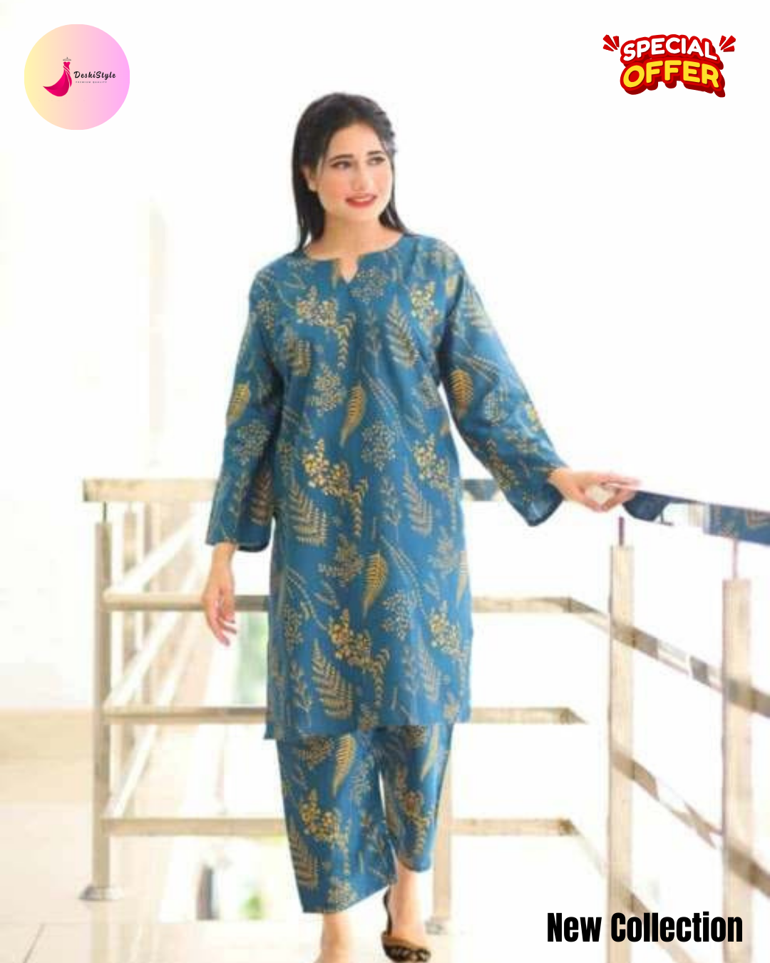 Introducing our Pakistani-inspired two-piece collection, crafted for both comfort and style. This collection includes a beautifully designed top and matching pants, made from pure cotton fabric with a unique skin print work that stands out.